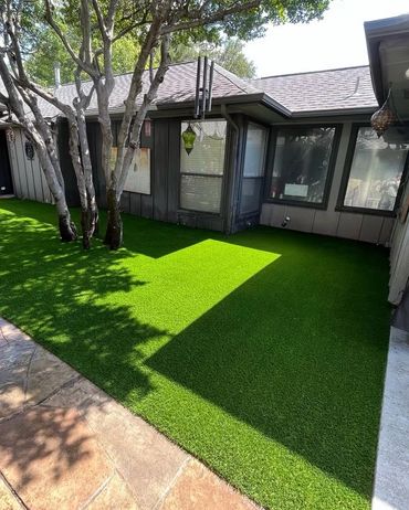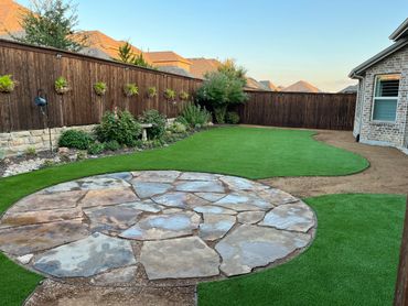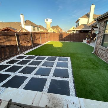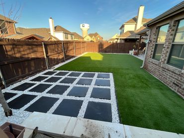 We specialize in creating elegant outdoor living spaces. We create beautiful yard designs with turf.